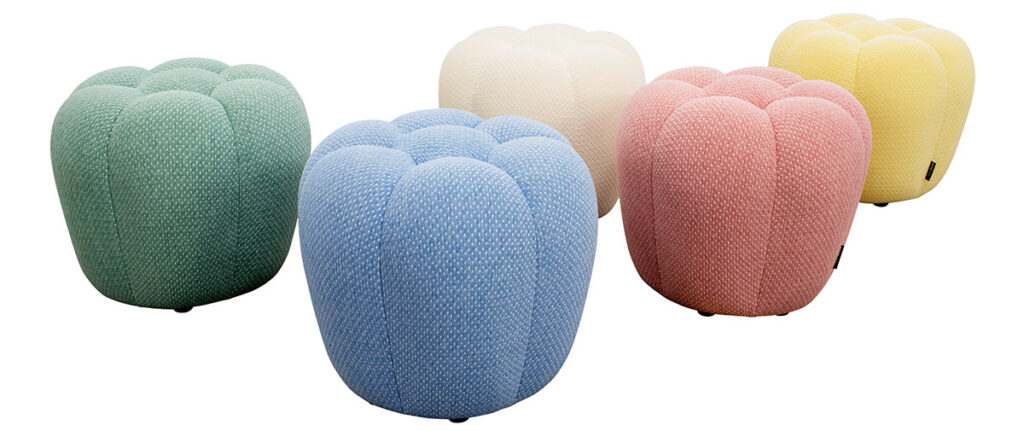 Poufs en tissu méridien matelassé par Sacha Lakic.