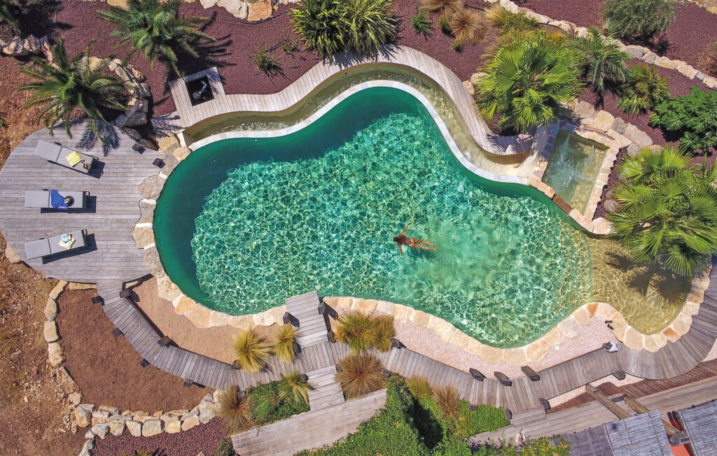 Deux choix possibles : effectuer le plus beau des plongeons via le ponton ou poursuivre en direction des bains de soleil et s’allonger pour une lecture au son des cigales.