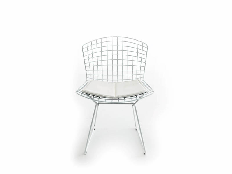 Fabriquée en 1950 pour l’extérieur, avec son quadrillage aérien et son assise en vinyle, la Bertoia Side Chair est définie par son illustre créateur en ces termes : « Cette chaise est une étude sur l’espace, les formes, le métal. Si vous la regardez, elle est faite principalement d’air, comme une sculpture légère. L’espace la traverse. » Knoll, Bertoia Side chair, création Harry Bertoia, chez Conran Shop.