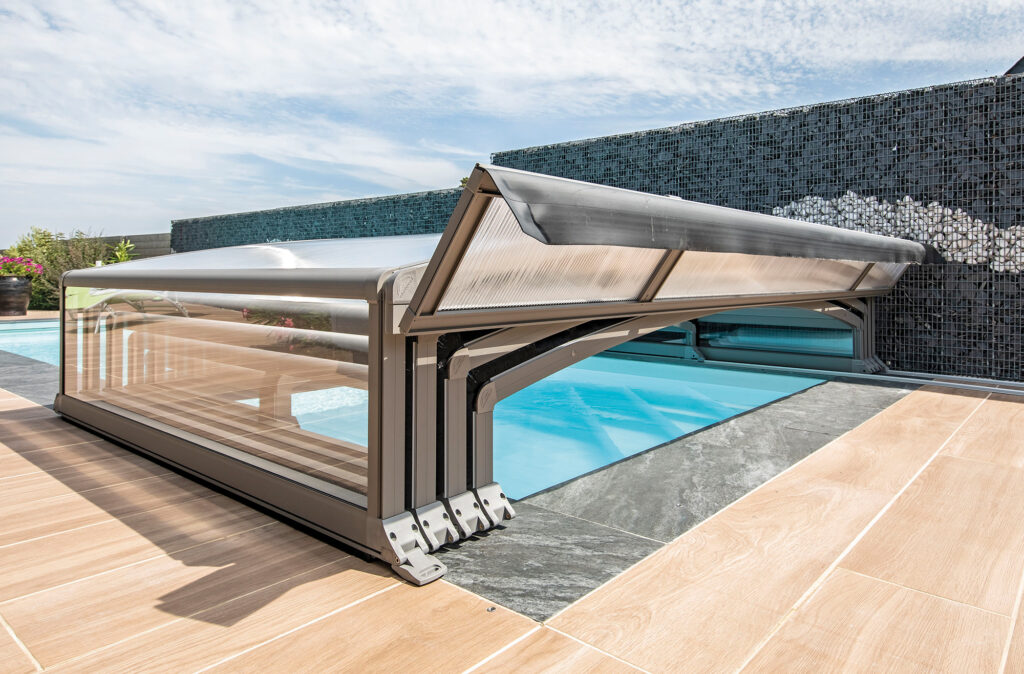 L’abri bas télescopique compte 4 modules et demi pour couvrir le bassin dans sa totalité et ainsi s’adapter à sa dimension. Une installation d’abri sur mesure qui recèle plusieurs points de personnalisation.