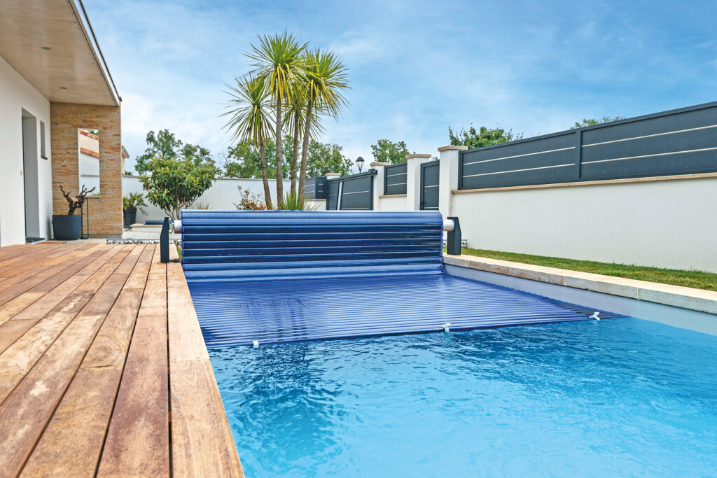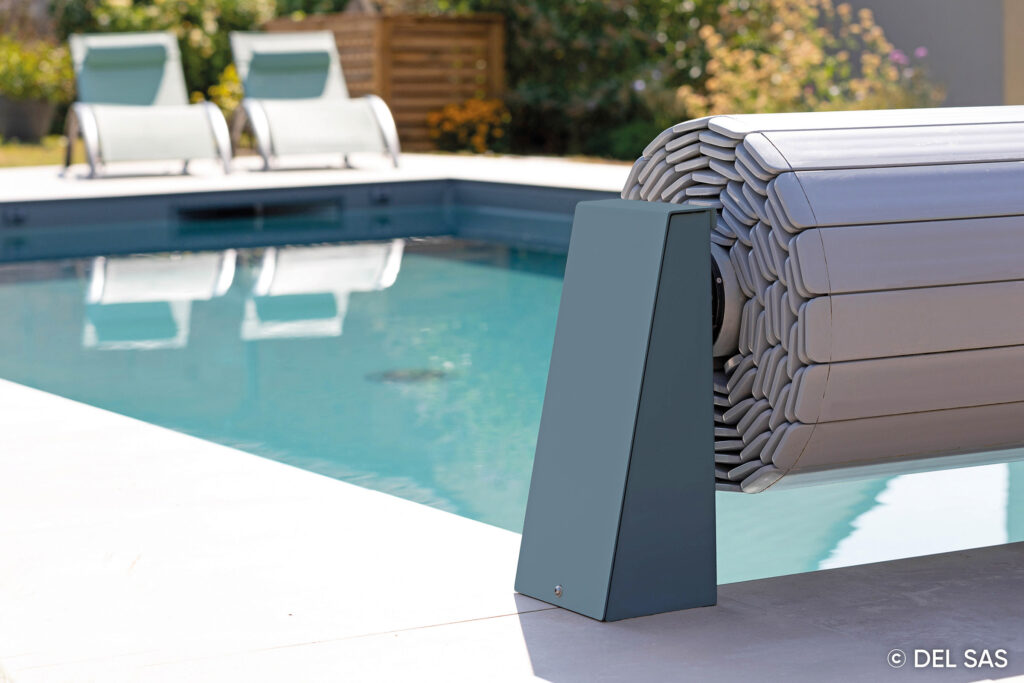 La gamme de volets hors d’eau ne cesse de s’allonger pour vous aider à trouver la solution la plus adaptée à votre budget. Avec un enrouleur posé sur pieds simples ou bornes aux formes étudiées, il peut même s’habiller pour devenir banc.