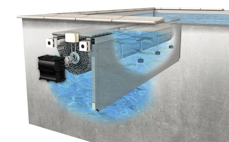 Pour une intégration parfaite, le volet peut être dissimulé au niveau du radier (sur ou sous le fond de la piscine), dans les parois, voire sous la banquette ou les escaliers. Dans tous les cas, l’axe d’enroulement est positionné derrière une cloison de séparation, celle-ci pouvant être en PVC ou maçonnée. Le volet peut également être installé dans un coffre sec, à l’extrémité du bassin, une configuration qui présente l’avantage de ne pas impacter la longueur de nage.