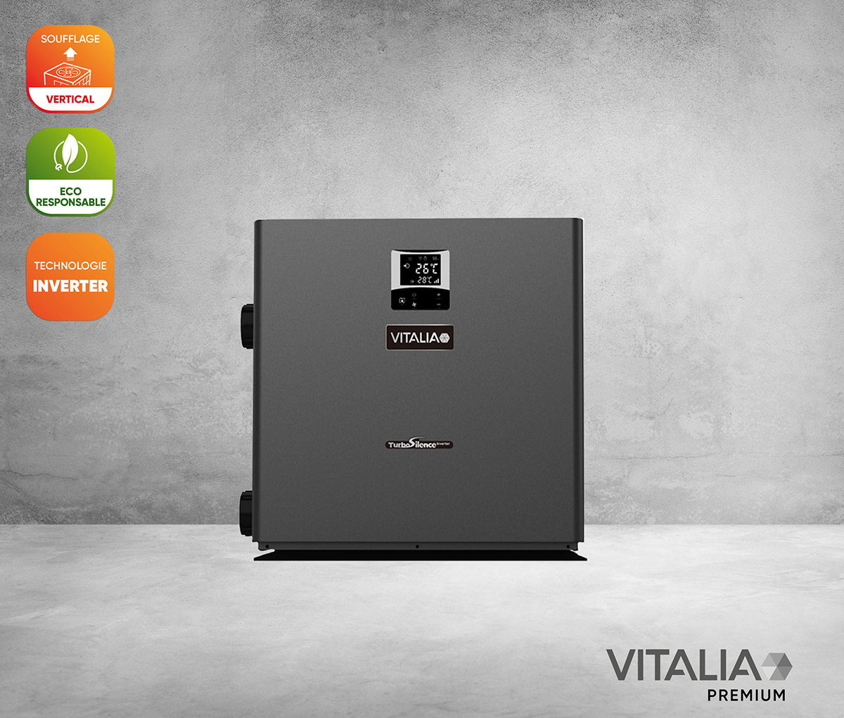 La pompe à chaleur Vitalia Premium a été imaginée pour s’intégrer aux espaces extérieurs plus restreints et une installation à proximité du bassin sans contrainte de dégagement devant l’appareil. Résultat, plus de flux d’air froid soufflé vers le baigneur et des émissions sonores réduites.