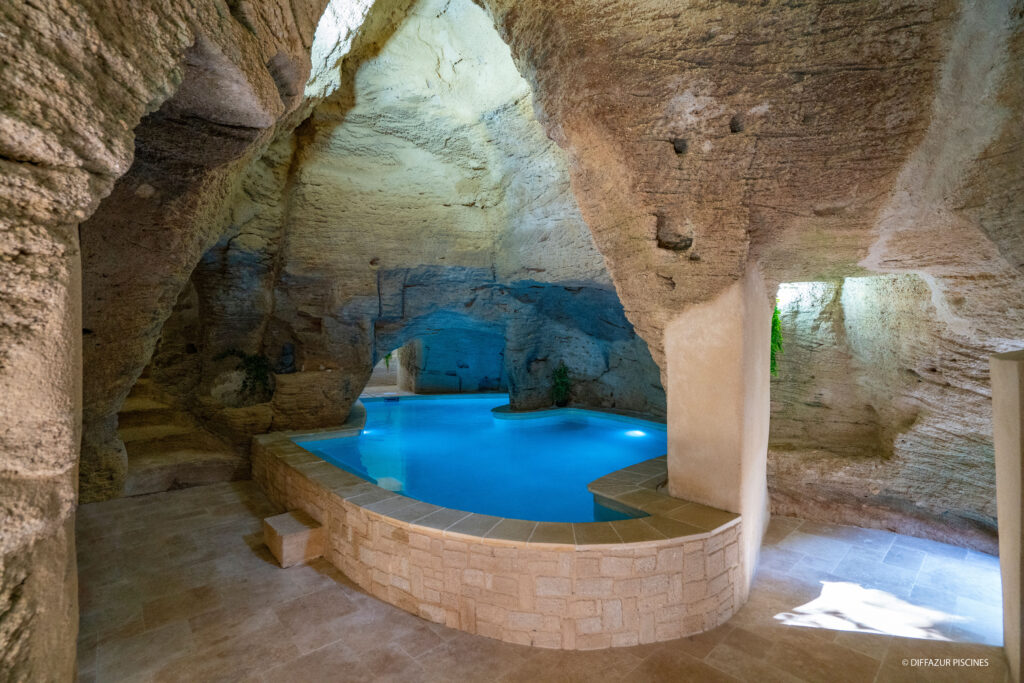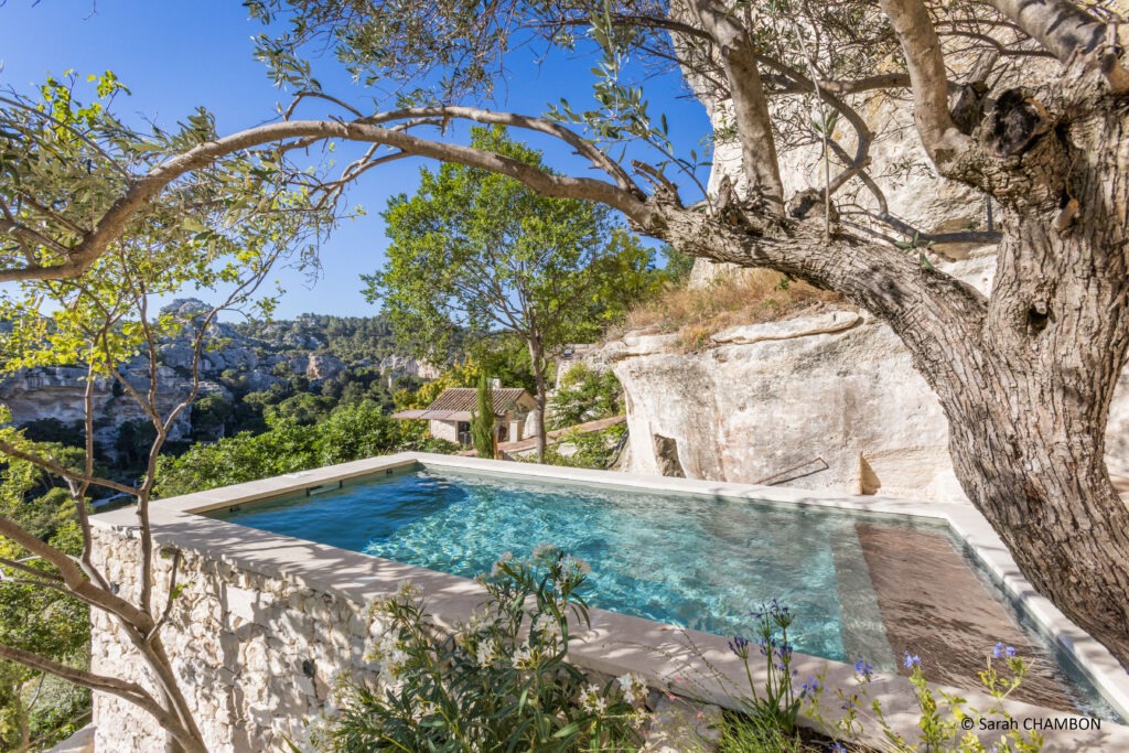 Caractéristiques techniques particulières : Piscine taillée dans la roche à flanc du bassin des Alpilles surplombant la charmante commune des Baux-de-Provence