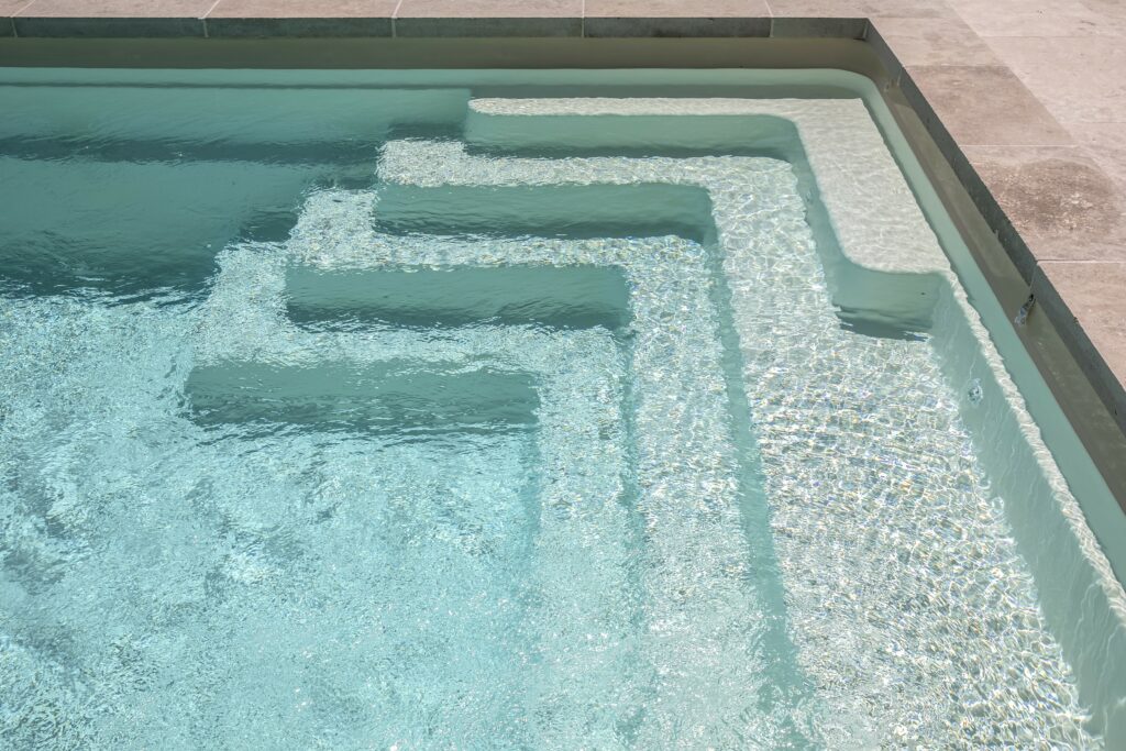 Sa teinte beige nuancée s’accorde avec le gel coat beige choisi comme couleur de revêtement du bassin. Cette couche de gel coat assure une finition lisse, agréable au toucher et résistante, elle présente aussi l’avantage de se nettoyer facilement.
