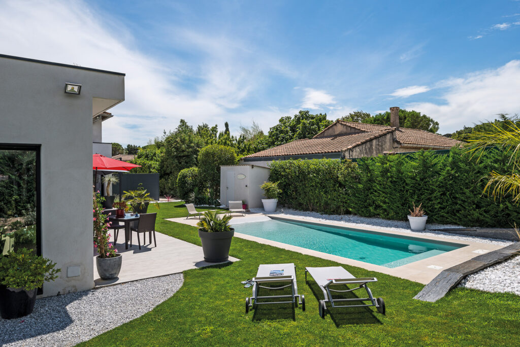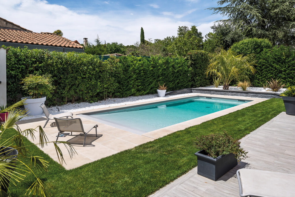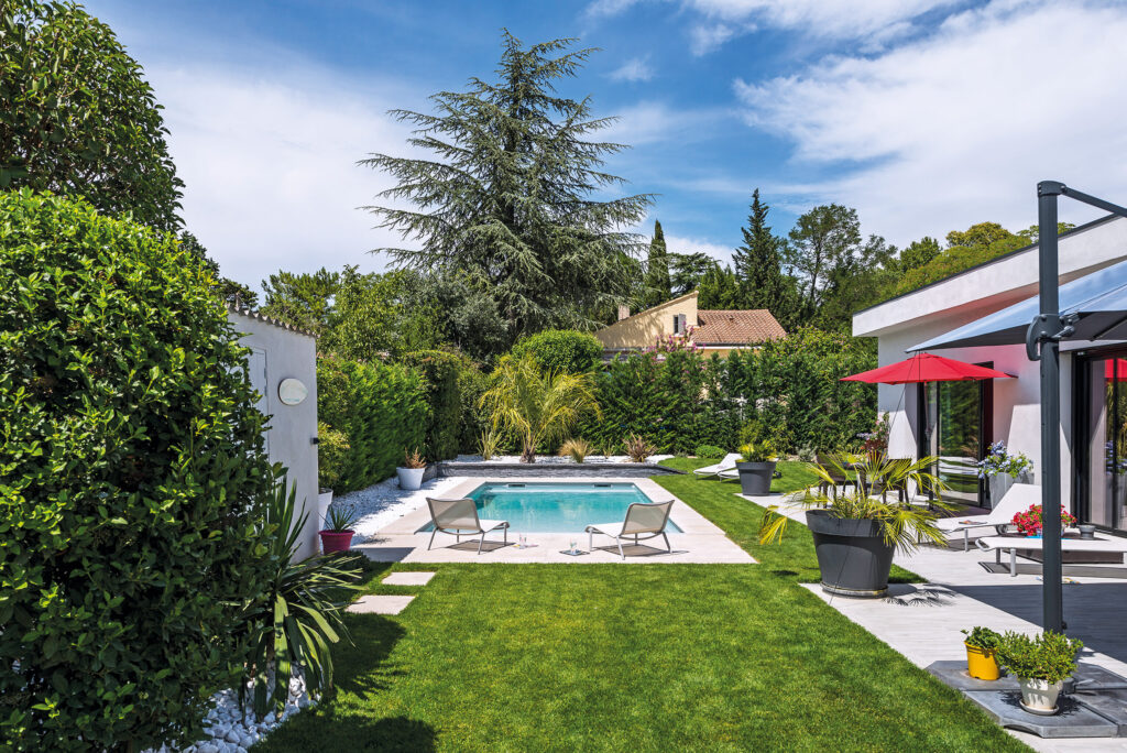 Dans le Gard, près d’Avignon, on se baigne comme au bord d’un lagon avec une piscine équipée d’une plage immergée. Un concept à découvrir.