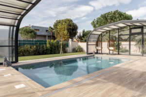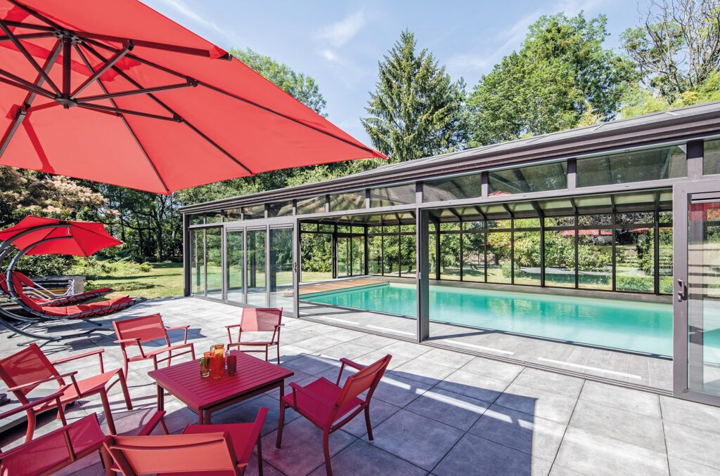 Conçu comme un espace de loisirs et de bien-être haut de gamme, l’espace piscine avec abri haut conjugue l’intérieur avec l’extérieur. Entièrement personnalisé et intégré à l’environnement, l’abri haut participe à l’esprit architectural de la maison.
