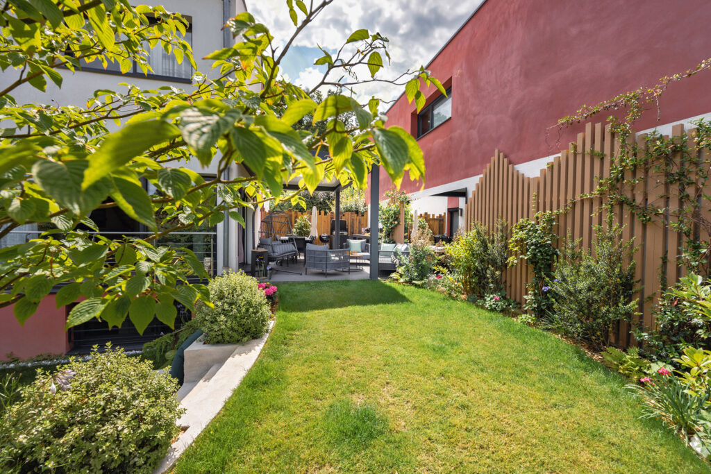 Les plantations, comprenant des orangers du Mexique, des jasmins palissés, des chèvrefeuilles et un olivier, ainsi que la création d’un potager, ont été soigneusement sélectionnées pour leurs résistances et leur capacité à animer l’espace extérieur tout au long de l’année. Un miroir a été ajouté pour dissimuler le mur en face du salon, créant une fenêtre virtuelle sur un monde luxuriant, apportant ainsi une touche de poésie à cet espace.