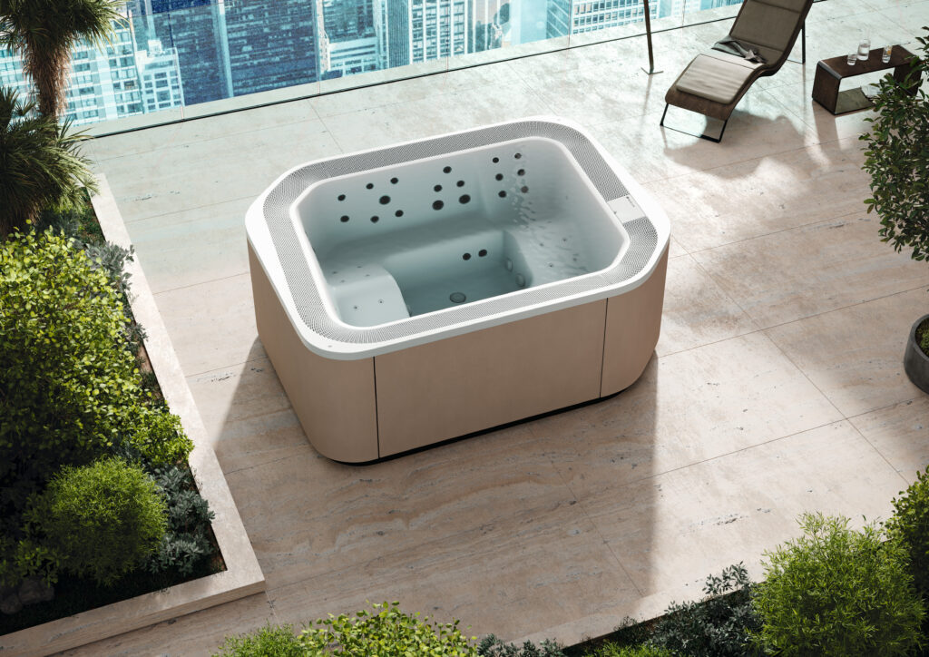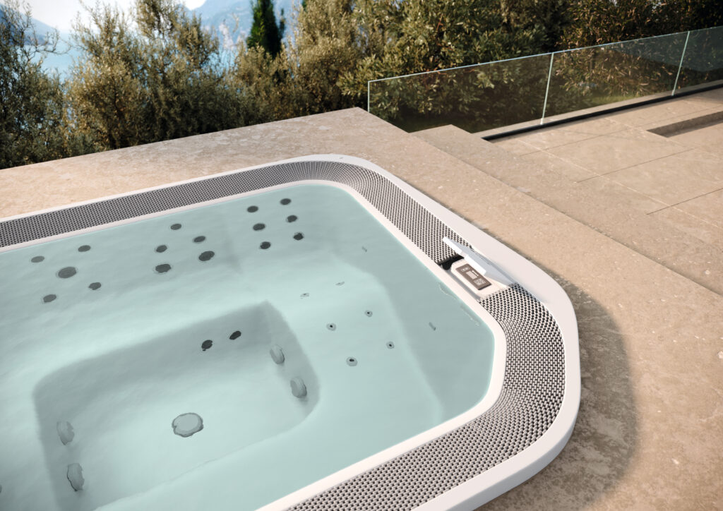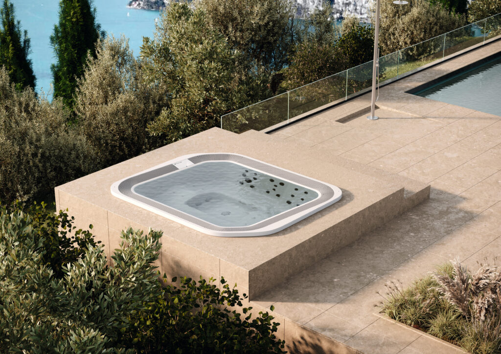 Disponible en version encastrée ou hors-sol, ce spa se distingue également par un choix raffiné de tabliers décoratifs : aspect argile, bois, métal oxydé, quartz ou textile, dans des teintes naturelles, chaudes ou froides. Une personnalisation qui permet à chacun de créer un espace bien-être à son image.