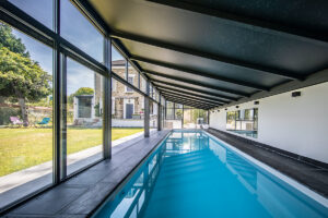 Conçu comme un espace de loisirs et de bien-être haut de gamme, l’espace piscine avec abri haut conjugue l’intérieur avec l’extérieur. Entièrement personnalisé et intégré à l’environnement, l’abri haut participe à l’esprit architectural de la maison.