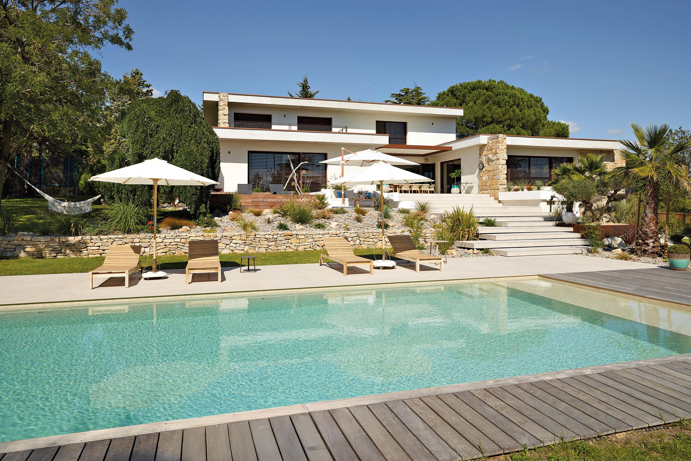 Rénover une piscine de 30 ans pour lui donner une allure moderne et naturelle ? C’est le pari réussi pour