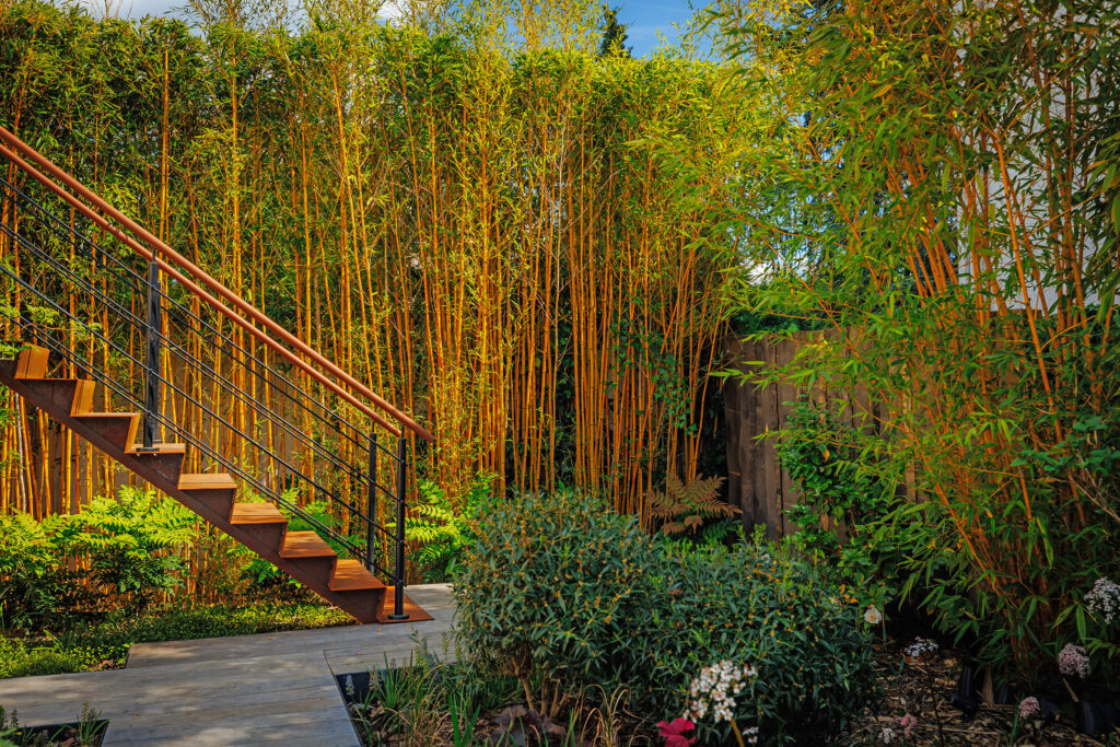 Parce qu’il reste très visible depuis l’intérieur de la maison, ce jardin a été pensé pour être vu sous tous les angles et différentes hauteurs. Un projet mené à termes qui satisfait pleinement ses propriétaires.