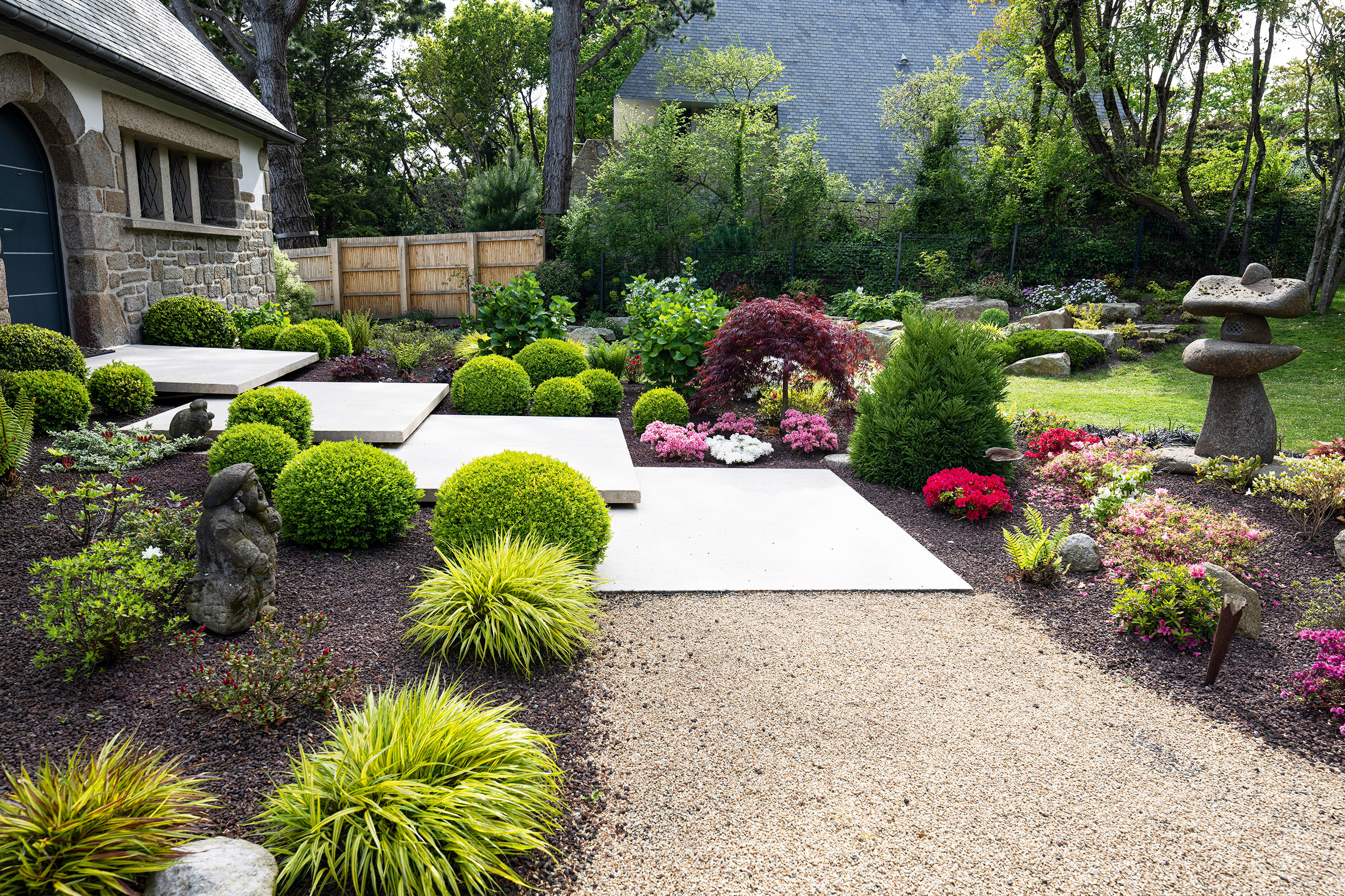 Entre ciel et mer, le jardin japonais de cette propriété accueille deux ambiances végétales. L’une, japonisante, exposée au nord, l’autre
