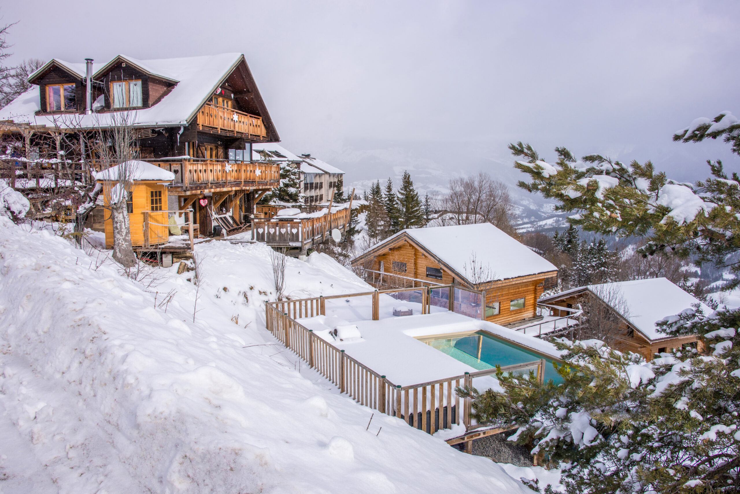 Un beau paysage enneigé est totalement compatible avec la piscine. Profitez de moments de baignades et de détente en contemplant